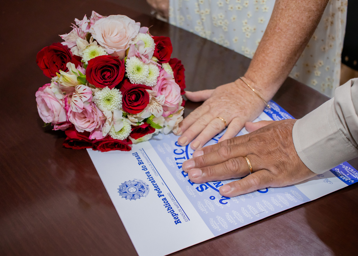 É com muita alegria que entrego o registro desse dia tão especial. Foi um privilégio acompanhar o 'sim' de vocês no cartório e depois ver a conexão do casal florescer no ensaio externo. As fotos refletem exatamente o que vi através das lentes: muito amor, parceria e felicidade. Espero que cada imagem faça vocês reviverem toda a emoção desse início de caminhada juntos. Parabéns pelo casamento e obrigado por confiarem no meu olhar para eternizar esse momento!"